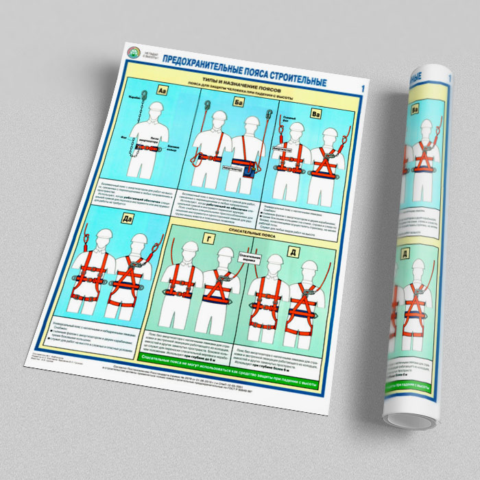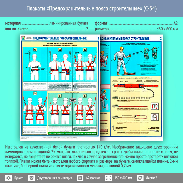 Плакаты «Предохранительные пояса строительные» (С-54, ламинированная бумага, А2, 2 листа) в Сургуте купить