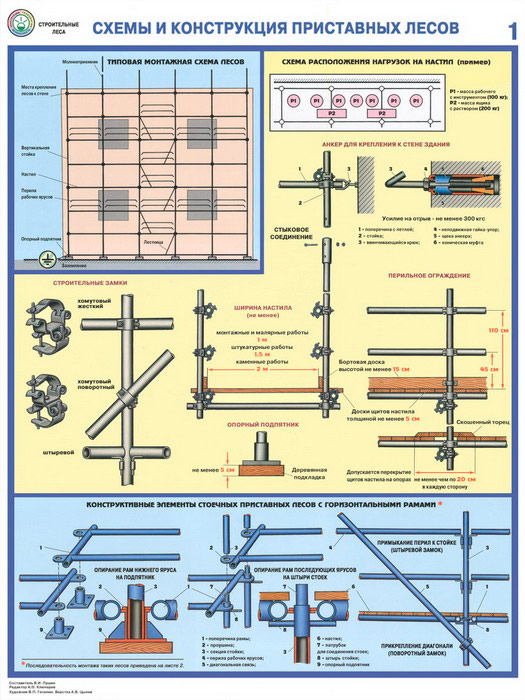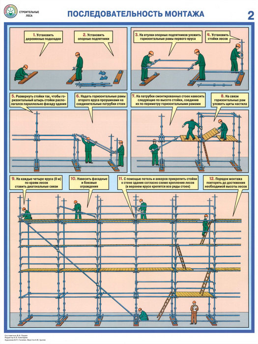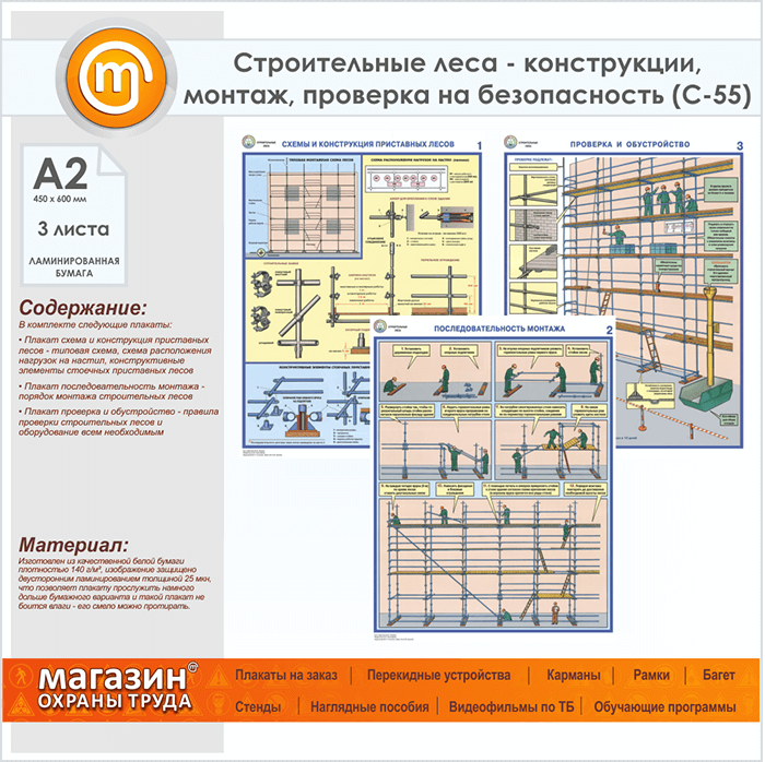 Плакаты «Строительные леса - конструкции, монтаж, проверка на безопасность» (С-55, ламинированная бумага, А2, 3 листа) в Сургуте купить