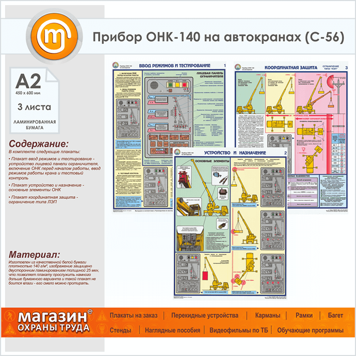 Плакаты «Прибор ОНК-140 на автокранах» (С-56, ламинированная бумага, А2, 3 листа) в Сургуте купить