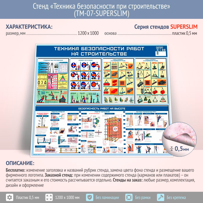 Стенд «Техника безопасности при строительстве» (TM-07-SUPERSLIM) в Сургуте купить