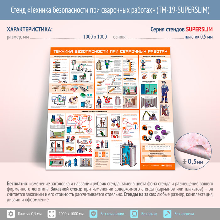 Стенд «Техника безопасности при сварочных работах» (TM-19-SUPERSLIM) в Сургуте купить