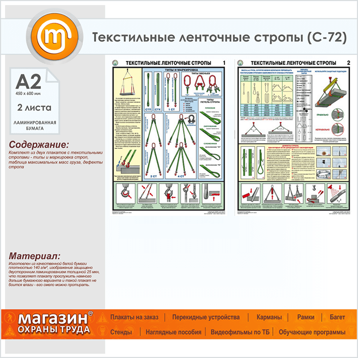 Плакаты «Текстильные ленточные стропы» (С-72, ламинированная бумага, А2, 2 листа) в Сургуте купить