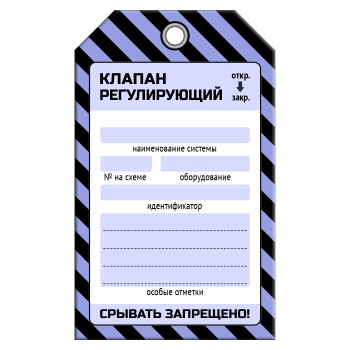 Бирка «КЛАПАН РЕГУЛИРУЮЩИЙ» (1 шт., односторонняя, пластик, 70х115 мм) в Сургуте купить