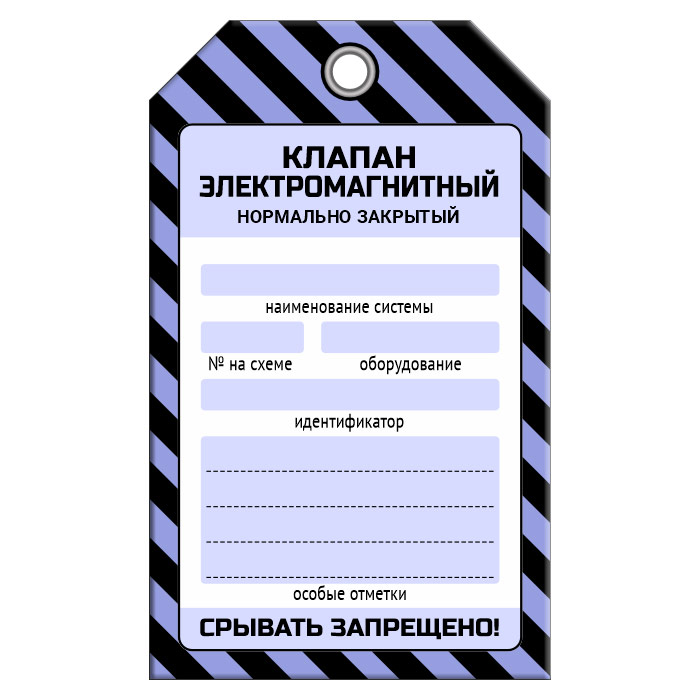 Бирка «КЛАПАН ЭЛЕКТРОМАГНИТНЫЙ НОРМАЛЬНО ЗАКРЫТЫЙ» (1 шт., односторонняя, пластик, 70х115 мм) в Сургуте купить