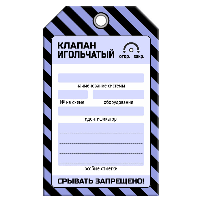 Бирка «КЛАПАН ИГОЛЬЧАТЫЙ» (1 шт., односторонняя, пластик, 70х115 мм) в Сургуте купить
