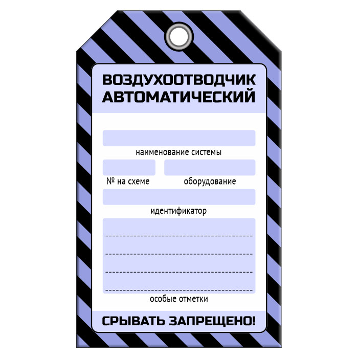 Бирка «ВОЗДУХООТВОДЧИК АВТОМАТИЧЕСКИЙ» (1 шт., односторонняя, пластик, 70х115 мм) в Сургуте купить