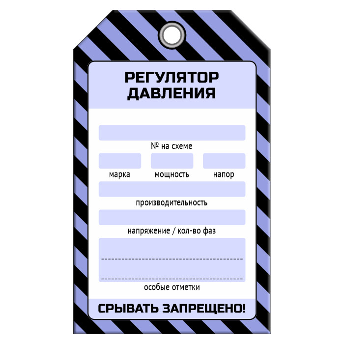 Бирка «РЕГУЛЯТОР ДАВЛЕНИЯ» (1 шт., односторонняя, пластик, 70х115 мм) в Сургуте купить