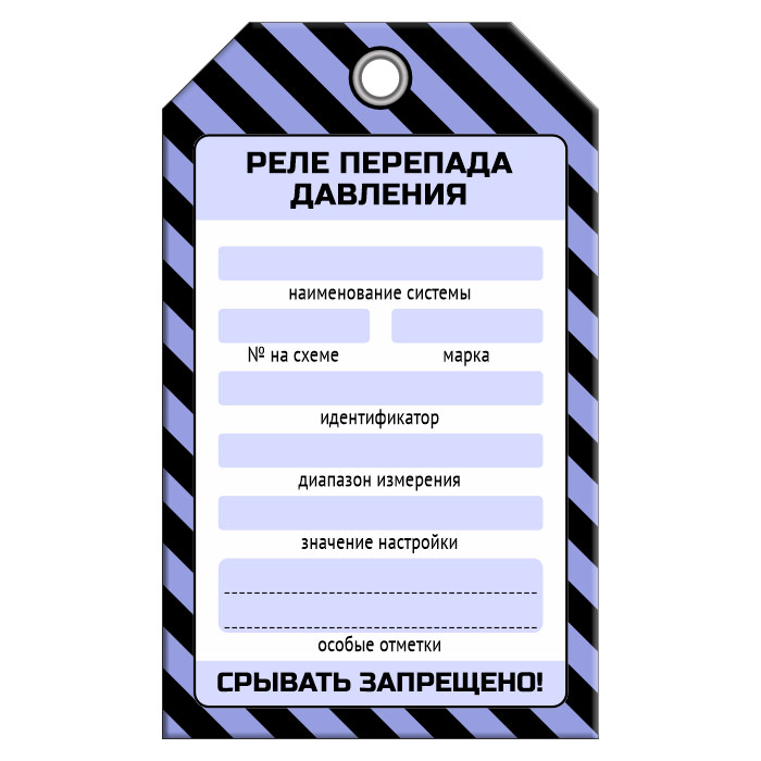 Бирка «РЕЛЕ ПЕРЕПАДА ДАВЛЕНИЯ» (1 шт., односторонняя, пластик, 70х115 мм) в Сургуте купить