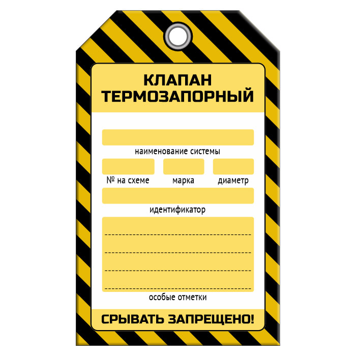 Бирка «КЛАПАН ТЕРМОЗАПОРНЫЙ» (1 шт., односторонняя, пластик, 70х115 мм) в Сургуте купить