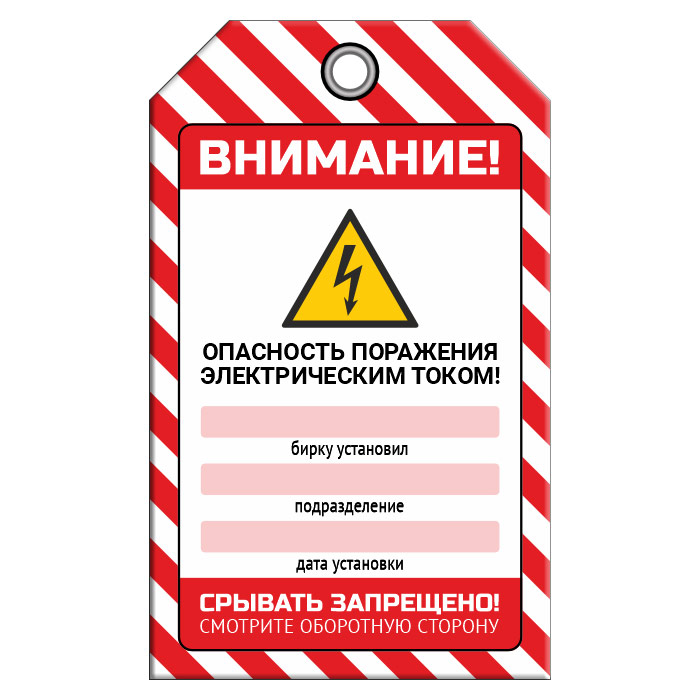 Бирка «ОПАСНОСТЬ ПОРАЖЕНИЯ ТОКОМ» (1 шт., двусторонняя, пластик, 70х115 мм) в Сургуте купить