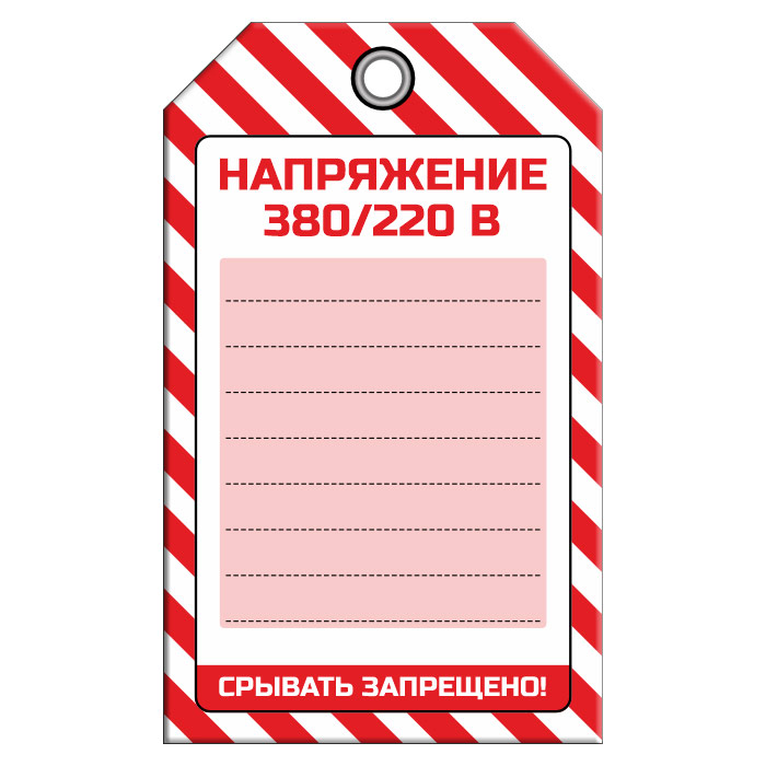 Бирка «НАПРЯЖЕНИЕ 380/220 В» (1 шт., односторонняя, пластик, 70х115 мм) в Сургуте купить