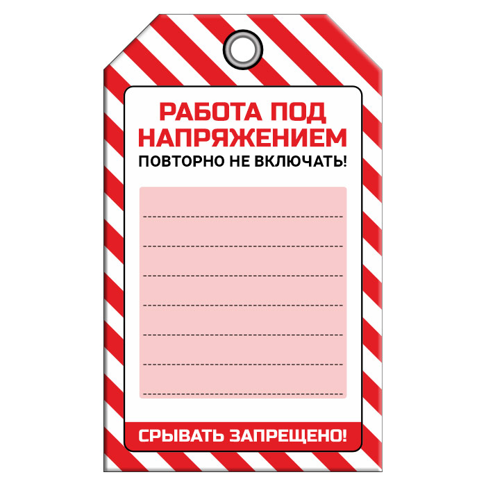 Бирка «РАБОТА ПОД НАПРЯЖЕНИЕМ» (1 шт., односторонняя, пластик, 70х115 мм) в Сургуте купить
