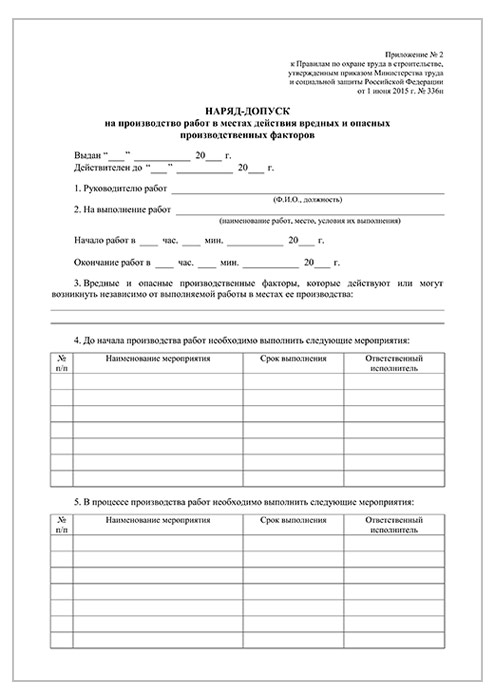 Наряд-допуск на производство работ в местах действия опасных или вредных факторов (упаковка из 100 штук) в Сургуте купить