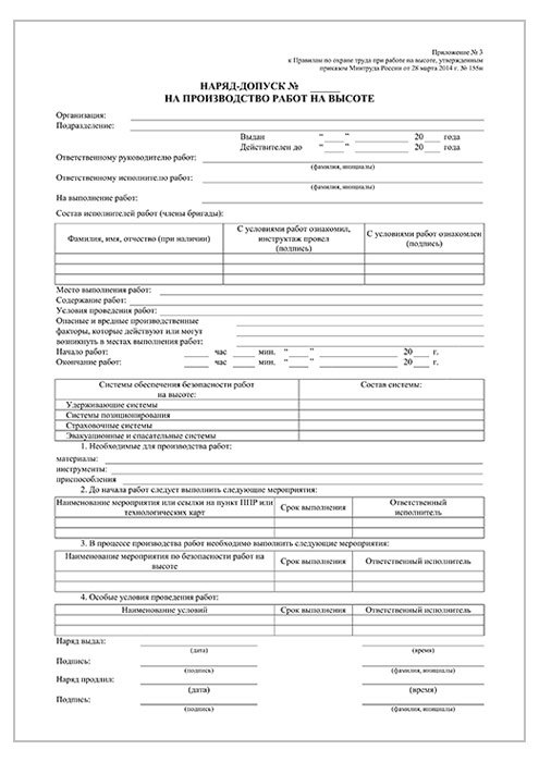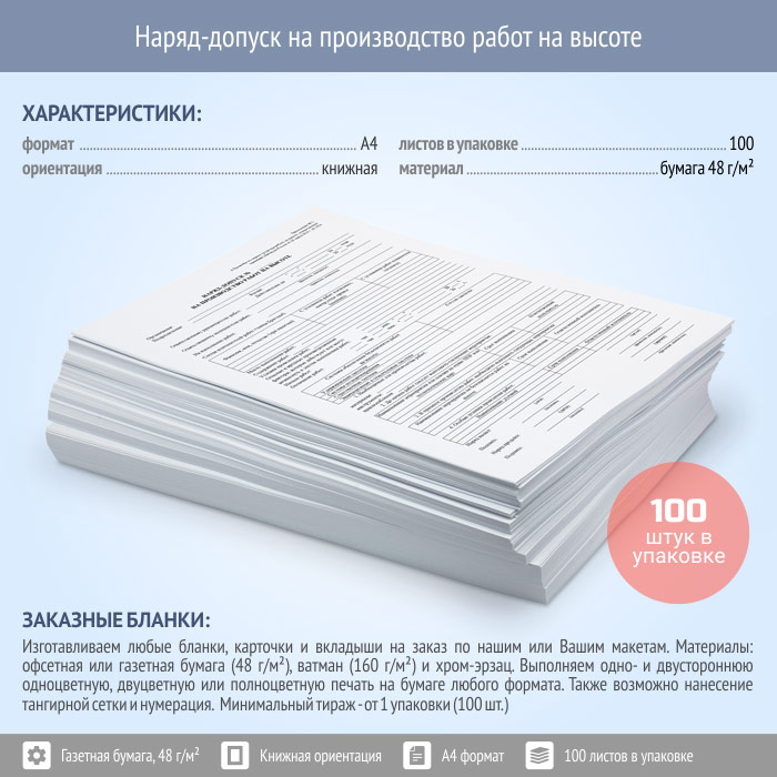 Наряд-допуск на производство работ на высоте (упаковка из 100 штук) в Сургуте купить