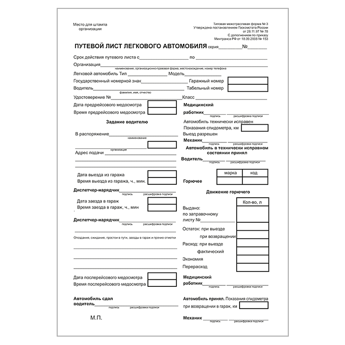 Путевой лист легкового автомобиля (форма № 3, упаковка из 100 штук) в Сургуте купить