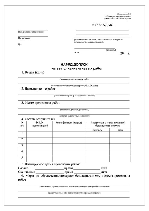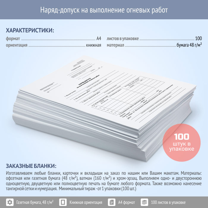 Наряд-допуск на выполнение огневых работ (упаковка из 100 штук) в Сургуте купить
