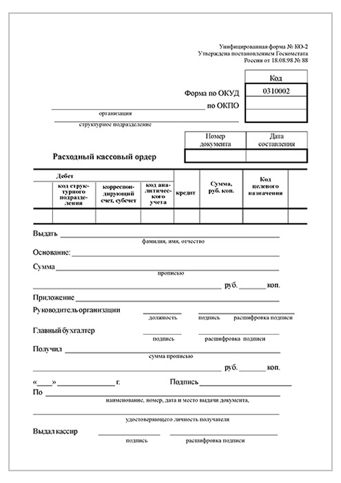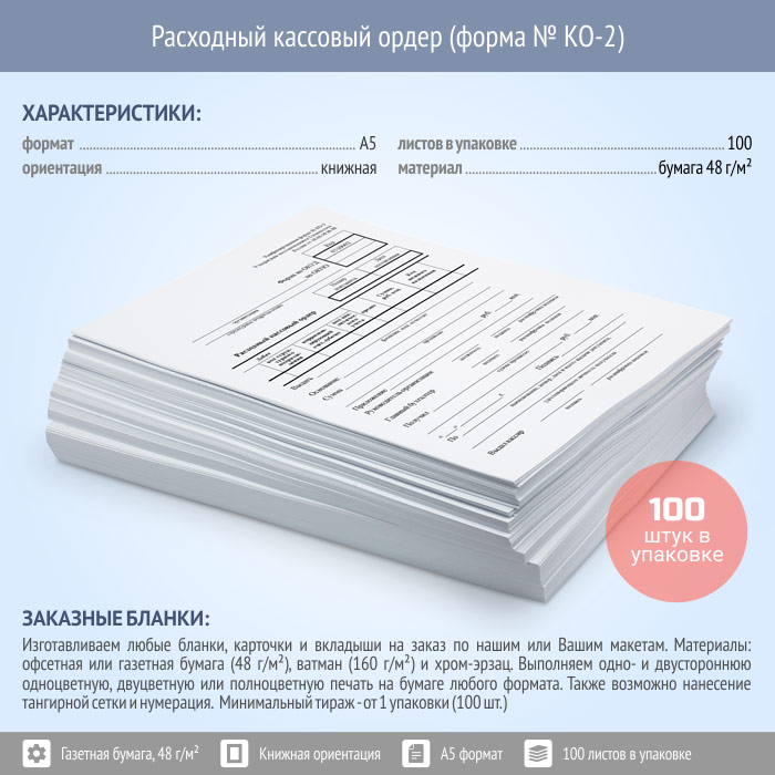 Расходный кассовый ордер (форма № КО-2, упаковка из 100 штук) в Сургуте купить