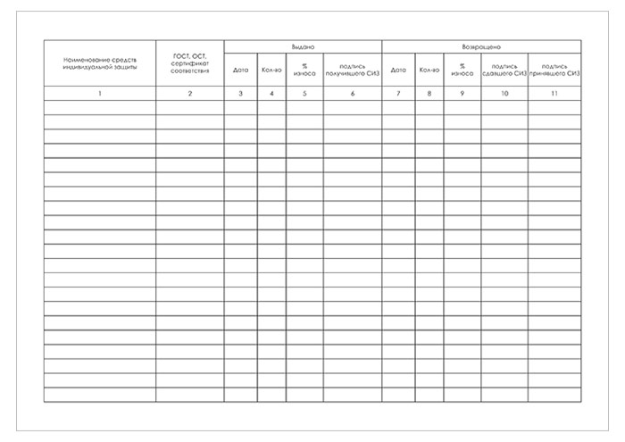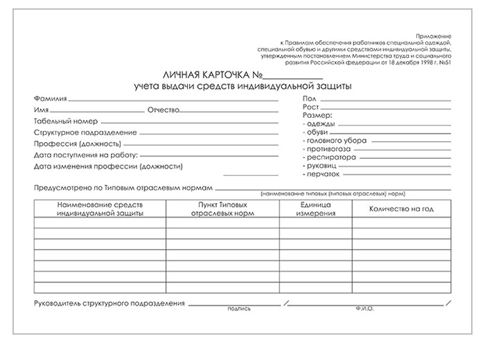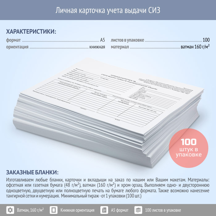 Карточка выдачи СИЗ (приказ Минздравсоцразвития от 01.06.2009 г. №290н, упаковка 100 штук) в Сургуте купить