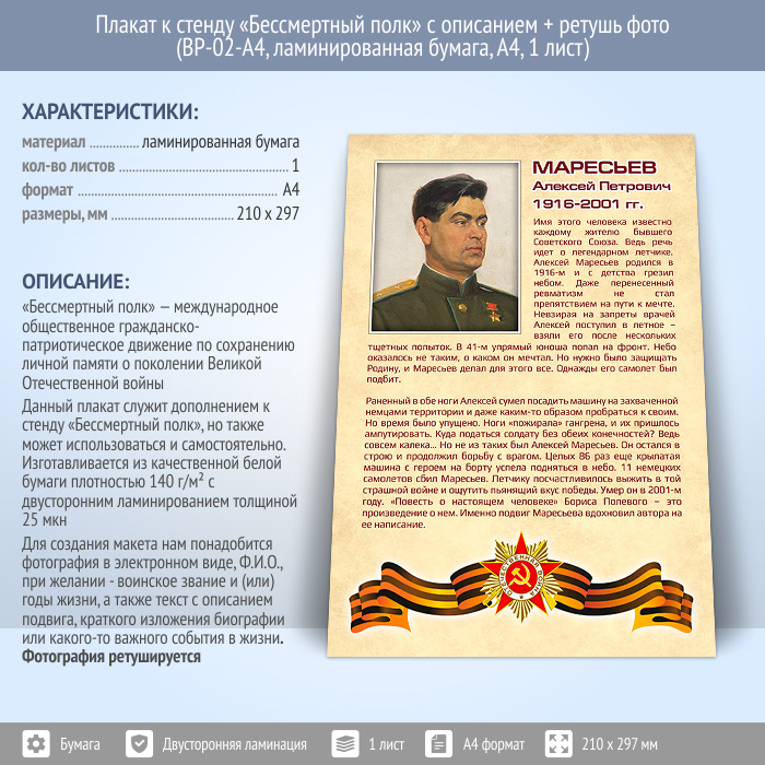 Плакат к стенду «Бессмертный полк» с описанием + ретушь фото (BP-02-A4, ламинированная бумага, А4, 1 лист) в Сургуте купить