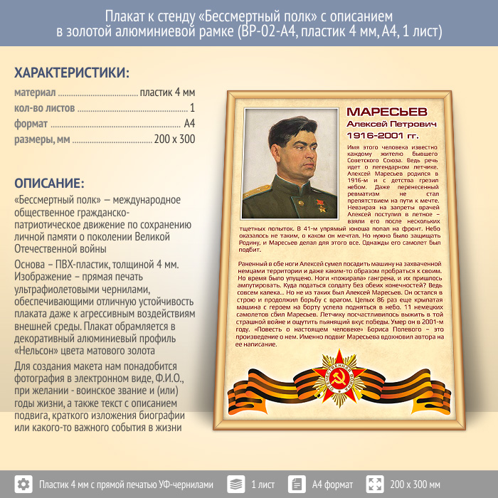 Плакат к стенду «Бессмертный полк» с описанием в золотой (матовой) алюминиевой рамке (BP-02-A4, пластик 4 мм, А4, 1 лист) в Сургуте купить