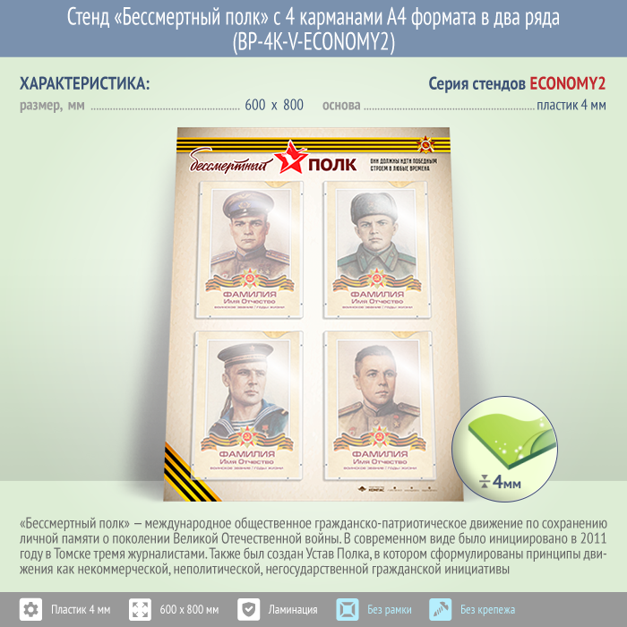Стенд «Бессмертный полк» с 4 карманами А4 формата в два ряда (BP-4K-V-ECONOMY2) в Сургуте купить