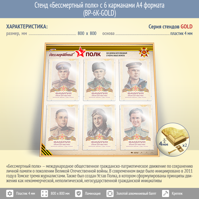 Стенд «Бессмертный полк» с 6 карманами А4 формата (BP-6K-GOLD) в Сургуте купить