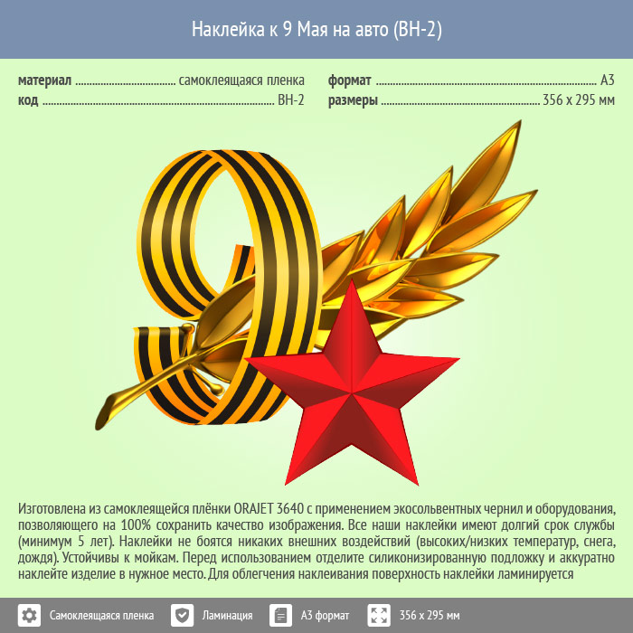 Наклейка к 9 Мая на авто А3 формата (BH-2) в Сургуте купить