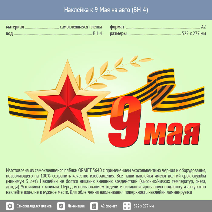 Наклейка к 9 Мая на авто А2 формата (BH-4) в Сургуте купить