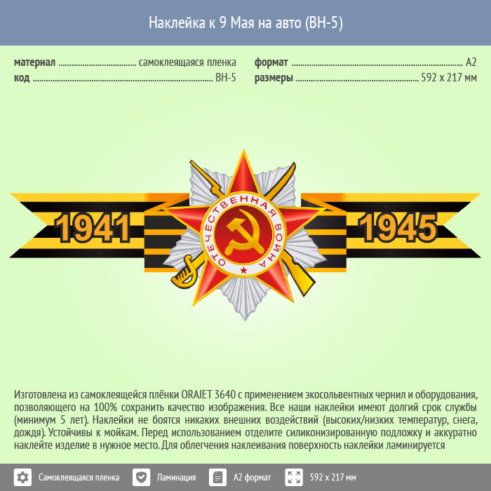 Наклейка к 9 Мая на авто А2 формата (BH-5) в Сургуте купить