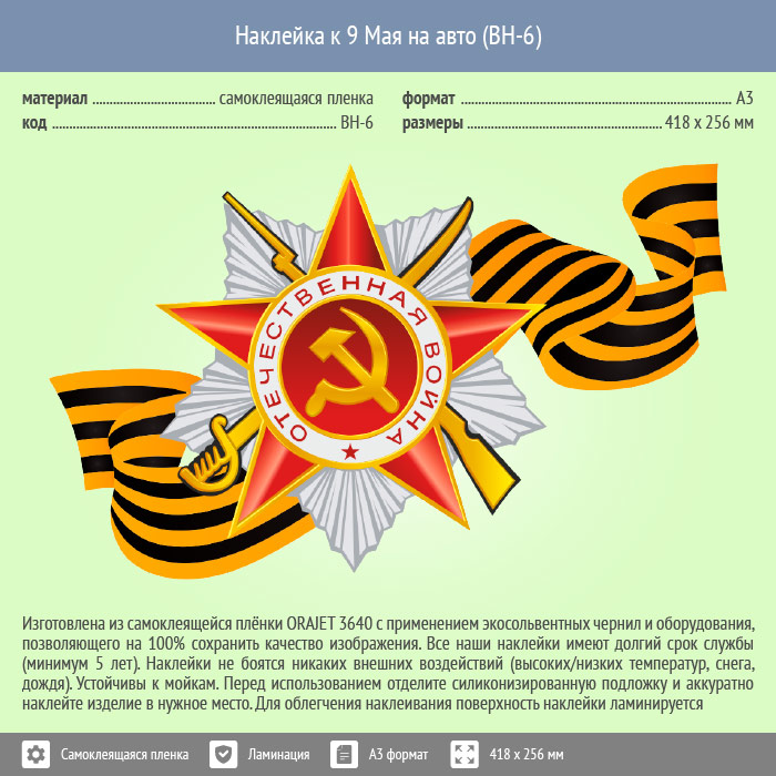 Наклейка к 9 Мая на авто А3 формата (BH-6) в Сургуте купить