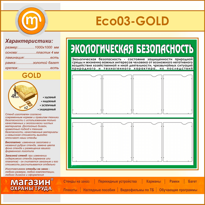 Стенд «Экологическая безопасность» с 8 карманами (ECO-03-GOLD) в Сургуте купить