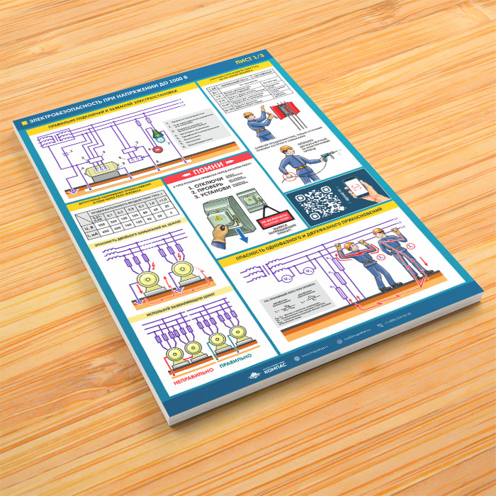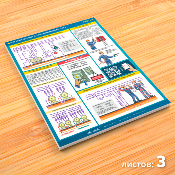 Плакаты «Электробезопасность при напряжении до 1000В» (М-64, ламинированная бумага, А2, 3 листа) в Сургуте купить