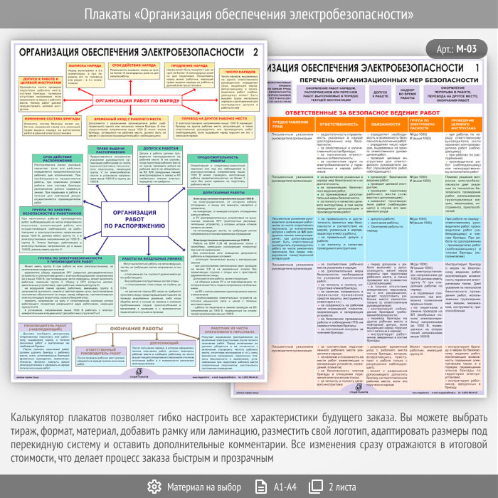 Плакаты «Организация обеспечения электробезопасности» (М-03, 2 листа) в Сургуте купить