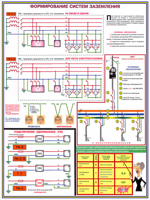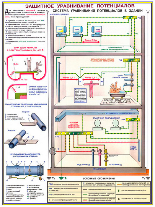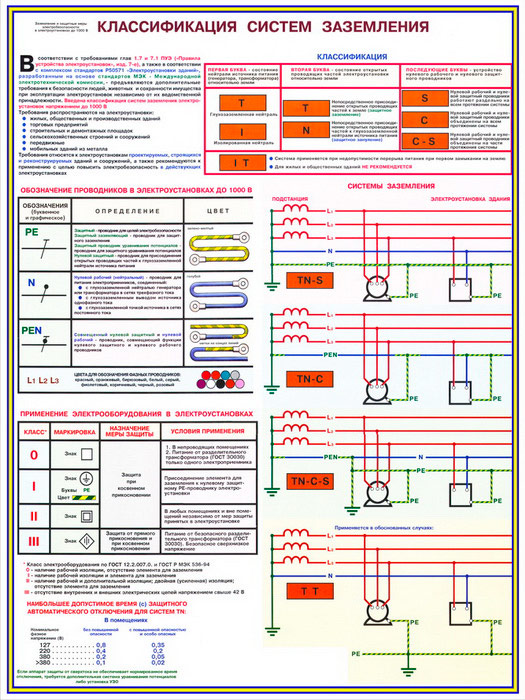 Плакаты «Заземление и защитные меры электробезопасности - напряжение до 1000В» (С-61, ламинированная бумага, А2, 4 листа) в Сургуте купить
