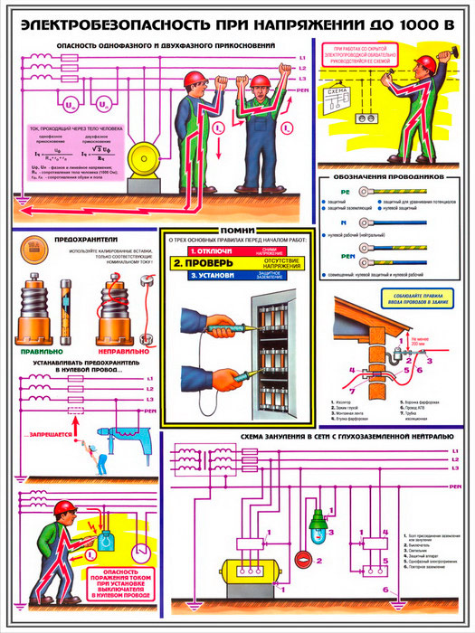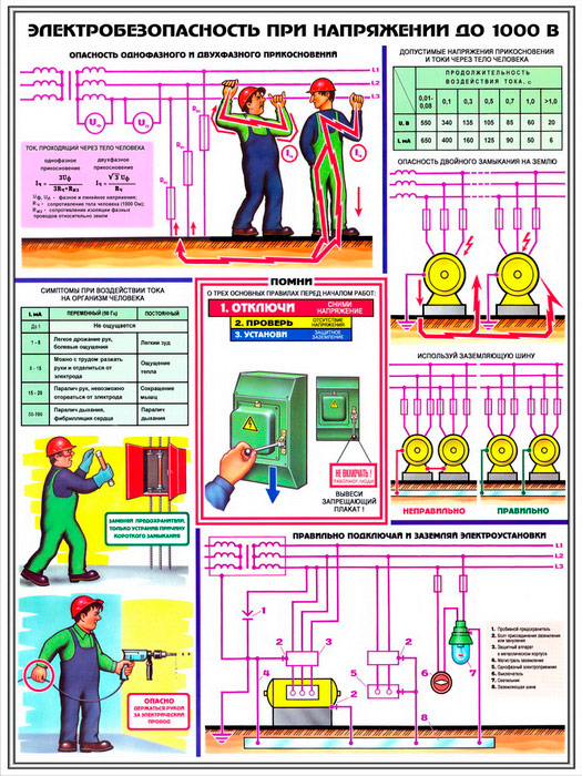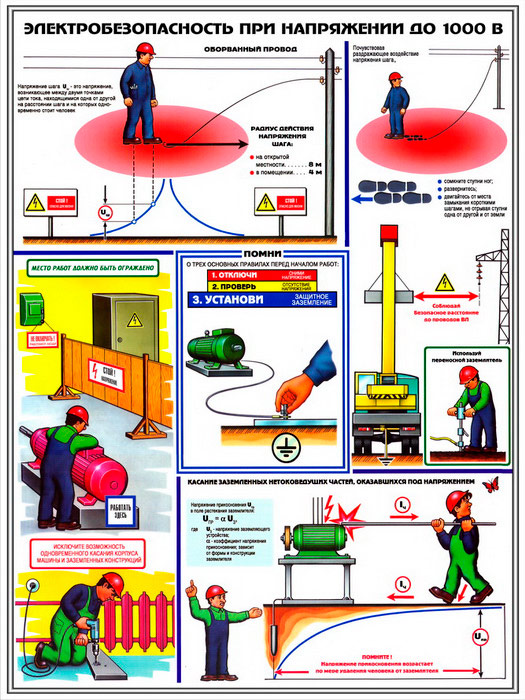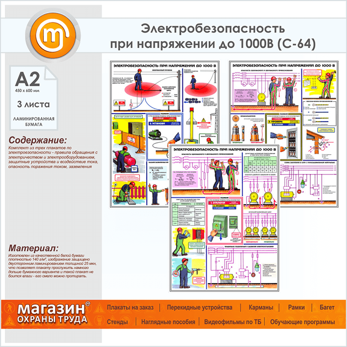 Плакаты «Электробезопасность при напряжении до 1000В» (С-64, ламинированная бумага, А2, 3 листа) в Сургуте купить