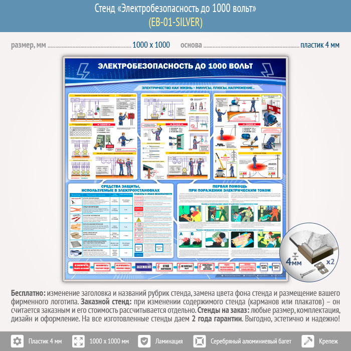 Стенд «Электробезопасность до 1000 вольт» (EB-01-SILVER) в Сургуте купить