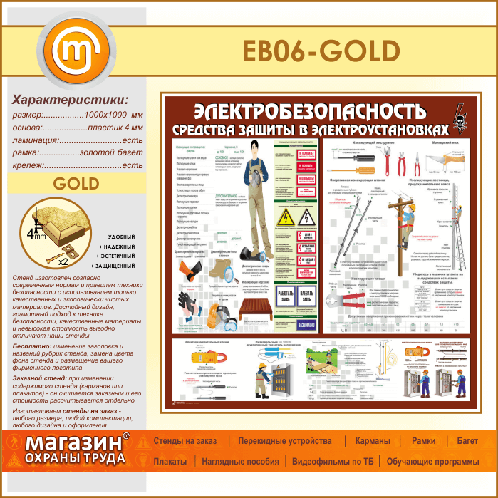 Стенд «Электробезопасность. Средства защиты в электроустановках» (EB-06-GOLD) в Сургуте купить