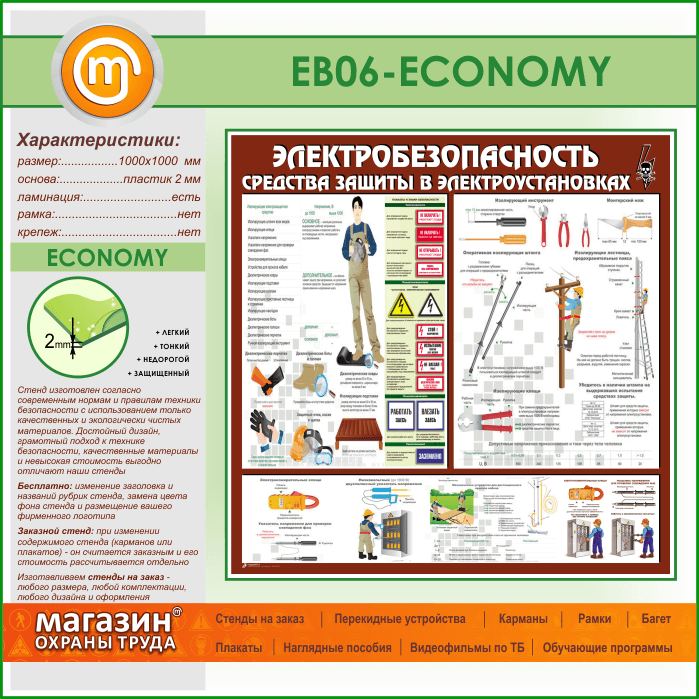 Стенд «Электробезопасность. Средства защиты в электроустановках» (EB-06-ECONOMY) в Сургуте купить