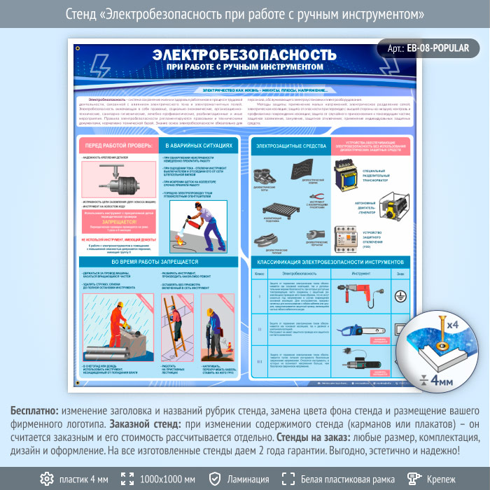 Стенд «Электробезопасность при работе с ручным инструментом» (EB-08-POPULAR) в Сургуте купить