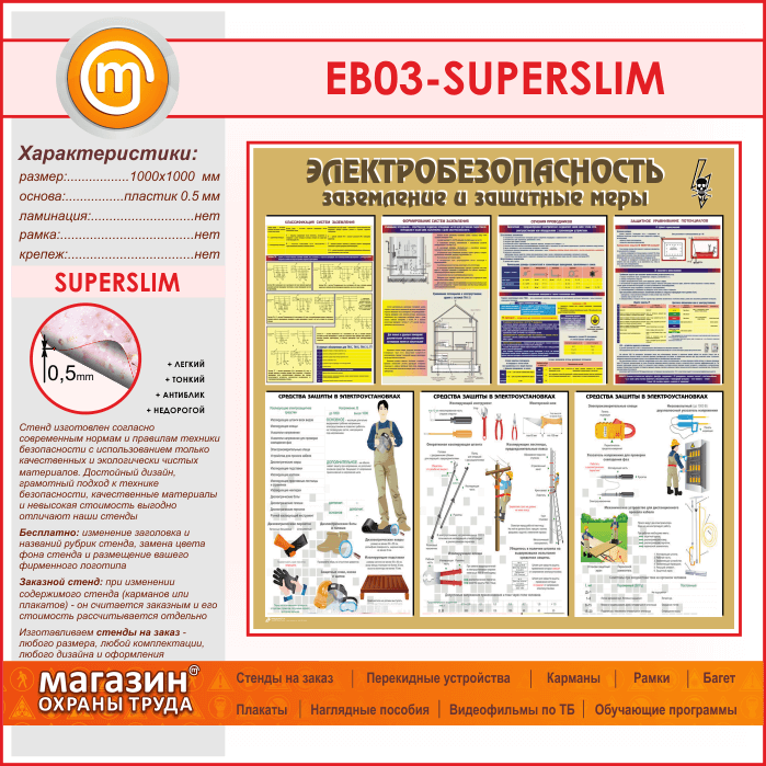 Стенд «Электробезопасность. Заземление и защитные меры» (EB-03-SUPERSLIM) в Сургуте купить