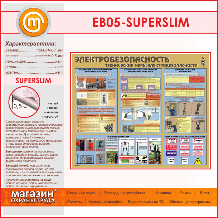 Стенд «Электробезопасность. Технические меры электробезопасности» (EB-05-SUPERSLIM) в Сургуте купить