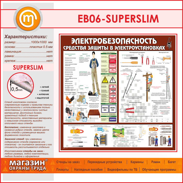 Стенд «Электробезопасность. Средства защиты в электроустановках» (EB-06-SUPERSLIM) в Сургуте купить