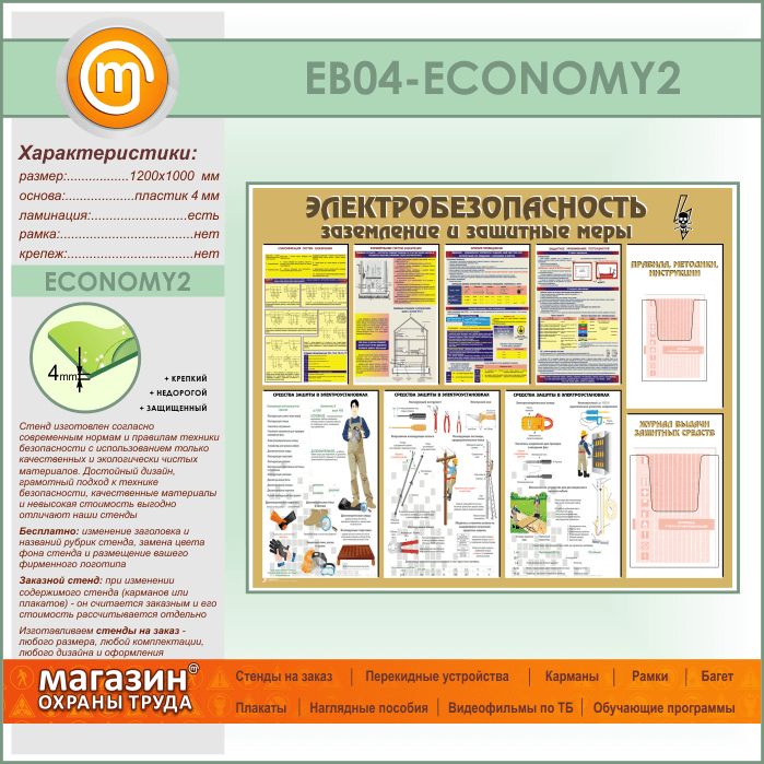 Стенд «Электробезопасность. Заземление и защитные меры» с 2 объемными карманами (EB-04-ECONOMY2) в Сургуте купить