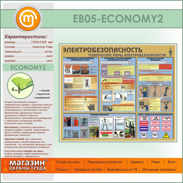Стенд «Электробезопасность. Технические меры электробезопасности» (EB-05-ECONOMY2) в Сургуте купить