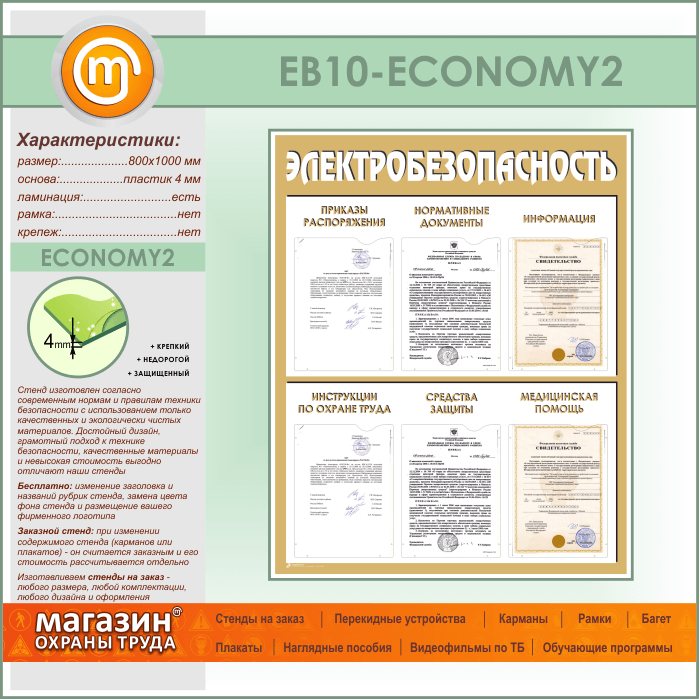 Стенд «Электробезопасность» с 6 карманами (EB-10-ECONOMY2) в Сургуте купить