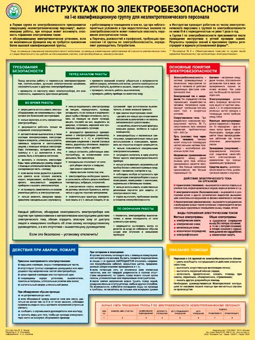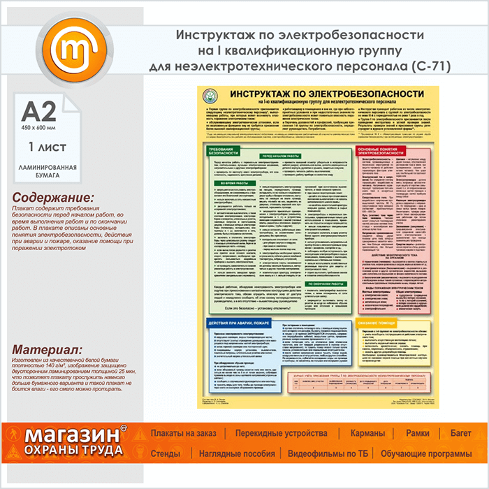 Плакат «Инструктаж по электробезопасности - на I квалификационную группу для неэлектротехнического персонала» (С-71, ламинированная бумага, А2, 1 лист) в Сургуте купить