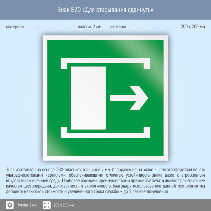Знак E20 «Для открывания сдвинуть» (пластик, 200х200 мм) в Сургуте купить