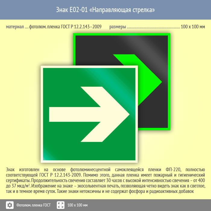 Знак E02-01 «Направляющая стрелка» (фотолюминесцентная пленка ГОСТ 34428-2018, 100х100 мм) в Сургуте купить
