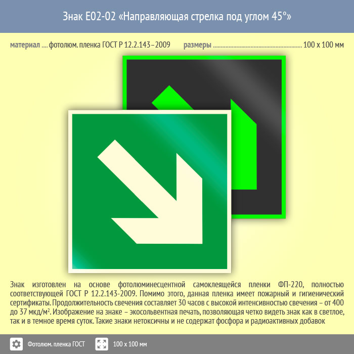 Знак E02-02 «Направляющая стрелка под углом 45°» (фотолюминесцентная пленка ГОСТ 34428-2018, 100х100 мм) в Сургуте купить