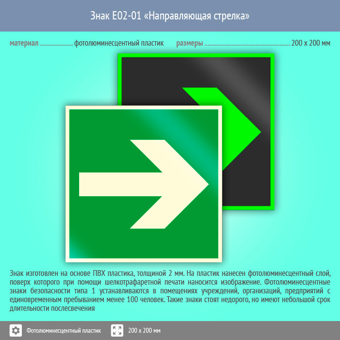 Знак E02-01 «Направляющая стрелка» (фотолюминесцентный пластик, 200х200 мм) в Сургуте купить